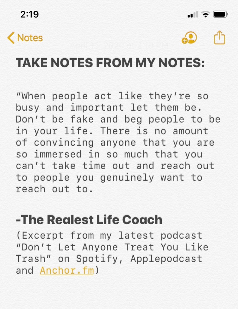 Take Notes From My Notes 📝 therealestlifecoach.com no comments April 15, 2020 Share this: Share on X (Opens in new window) X Share on Facebook (Opens in new window) Facebook Like Loading...