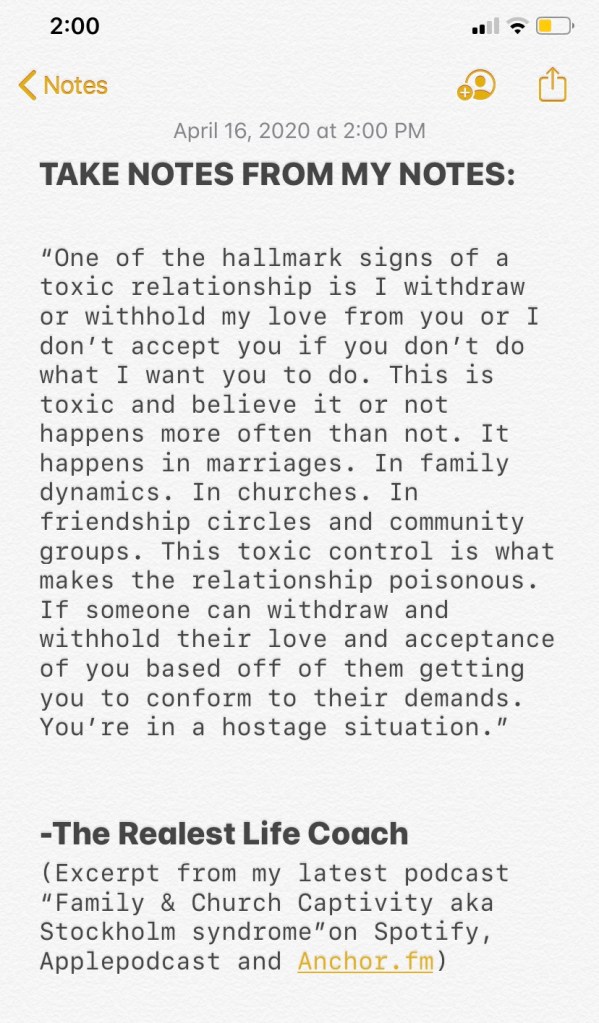 Take Notes From My Notes π therealestlifecoach.com no comments April 16, 2020 Share this: Click to share on X (Opens in new window) X Click to share on Facebook (Opens in new window) Facebook Like Loading...