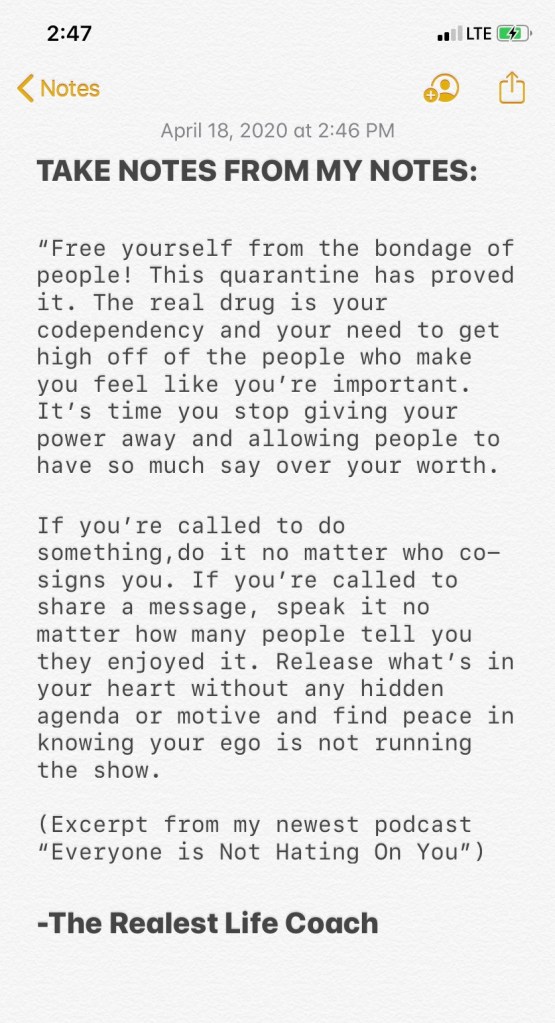 Take Notes From My Notes π therealestlifecoach.com no comments April 18, 2020 Share this: Click to share on X (Opens in new window) X Click to share on Facebook (Opens in new window) Facebook Like Loading...