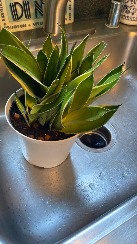 Don’t let her good looks deceive you. This one was bringing gnats into the room. So i politely took her out of the space and exposed her, changed her dirt, cleaned her real good at the roots and repotted her.