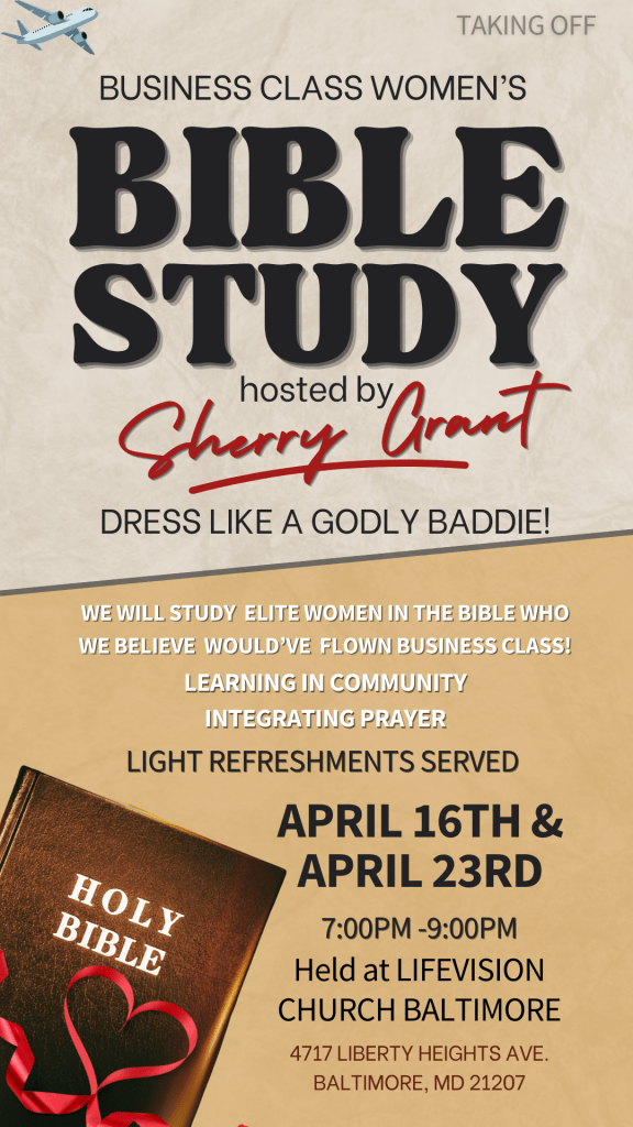 Here’s your personal invite to join me for a powerful women’s only Bible study hosted by yours truly! Dress like a Godly Baddie! Enjoy light refreshments and a community of women who are taking off and living their best life!
